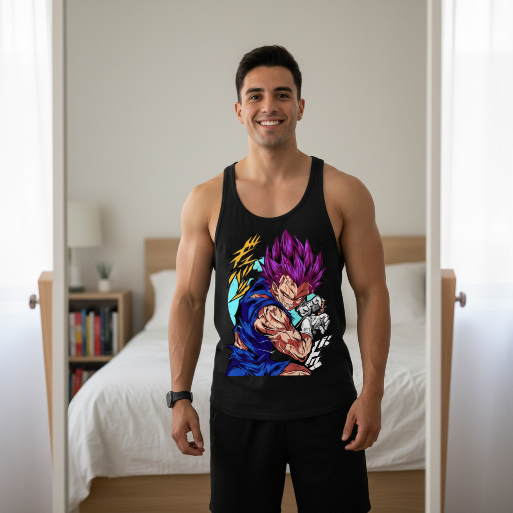NUEVO💥 Ultra Ego Tank Top – Activa tu modo Saiyan en Cada Entreno💥Camiseta de tirantes edición limitada. No entrenes como uno más. Entrena con la energía de tu mejor versión.